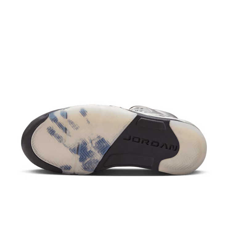 The Jordan 5 Retro “Wings” (Women's, 2025) celebrates 10 years of the Jordan Wings Scholars Program with a sleek, reflective Metallic Silver and Medium Grey satin upper. Accented by black highlights and a tassel hang‑tag marking the milestone, it features “In the Family – No One Flies Alone” stitched across the toes. A Wings Jumpman emblem replaces “Nike Air” on the heel, which sports a bold “10” instead of “23.” Underfoot, translucent soles unveil MJ’s handprints that, together, form the number 10—a stylish tribute to education and legacy.